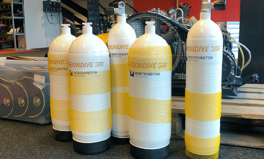 Carbondive leverer komposittflasker til en lang rekke applikasjoner innenfor gass og flytende gasser, produsert etter amerikanske standarder og sertifisert etter europeiske regler.