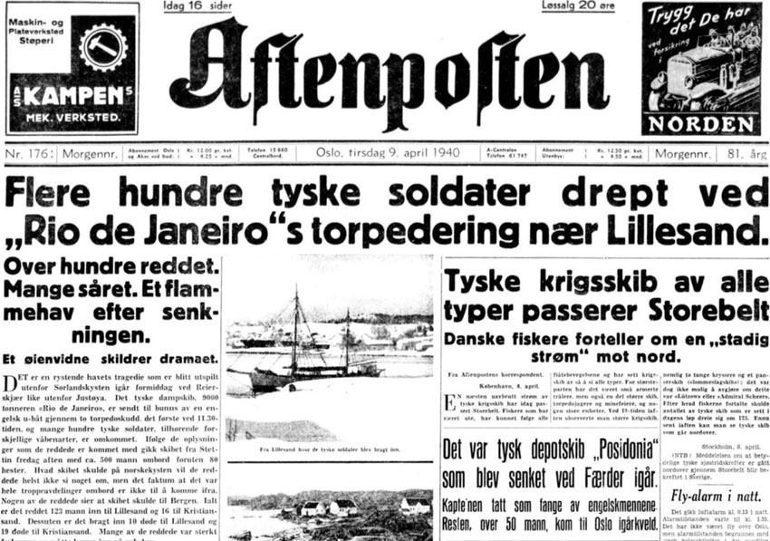 Faksimile fra Aftenposten 9. april 1940.