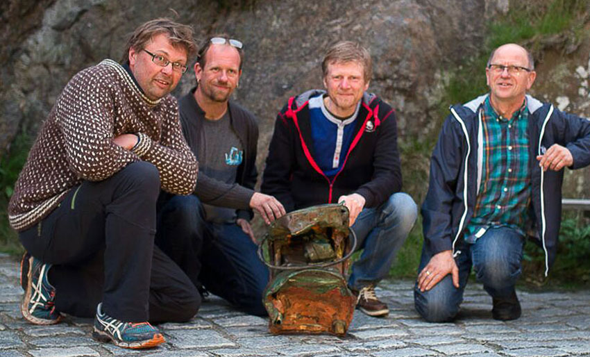 Fra venstre Pål Nymoen (Maritimt Museum), Espen Johannesen (Agder-Tech), Tom Lundahl (A-Dykk Kristiansand) og Vidar Johannesen (Agder-Tech).