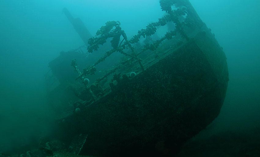 Den 6. oktober 1985 grunnstøtte den lille lastebåten M/S Kletten på Skolflua på Hitra, og sank på 10–18 meters dyp. Foto: Christian Skauge