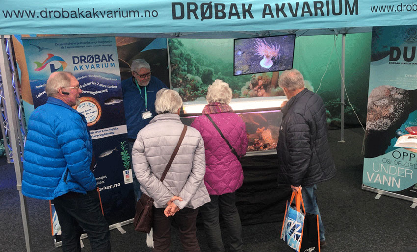 Drøbak Akvarium stiller med et assortert utvalg lokale innbyggere fra Oslofjorden. Det er ikke bare de yngste som synes det er spennende å se hva som rører seg under overflaten! Snittalderen var tidvis høy — moro at livet i havet engasjerer alle.