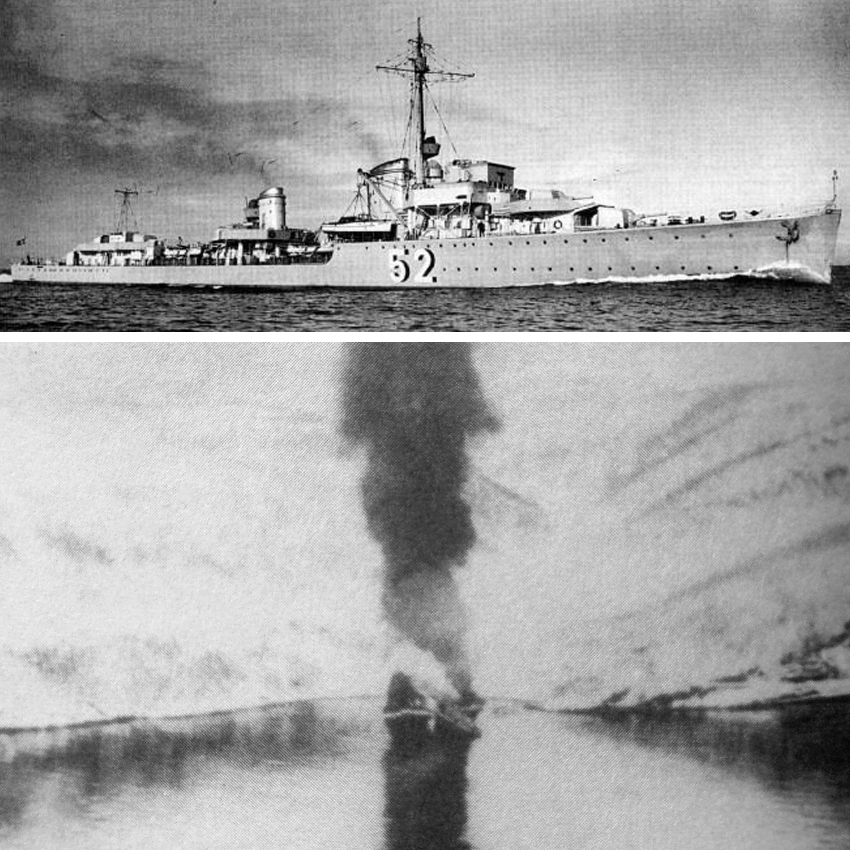 Hermann Künne ble senket av mannskapet i Herjangfjorden 13. april 1940, etter å ha gått tom for drivstoff og ammunisjon. Foto: Imperial War Museum
